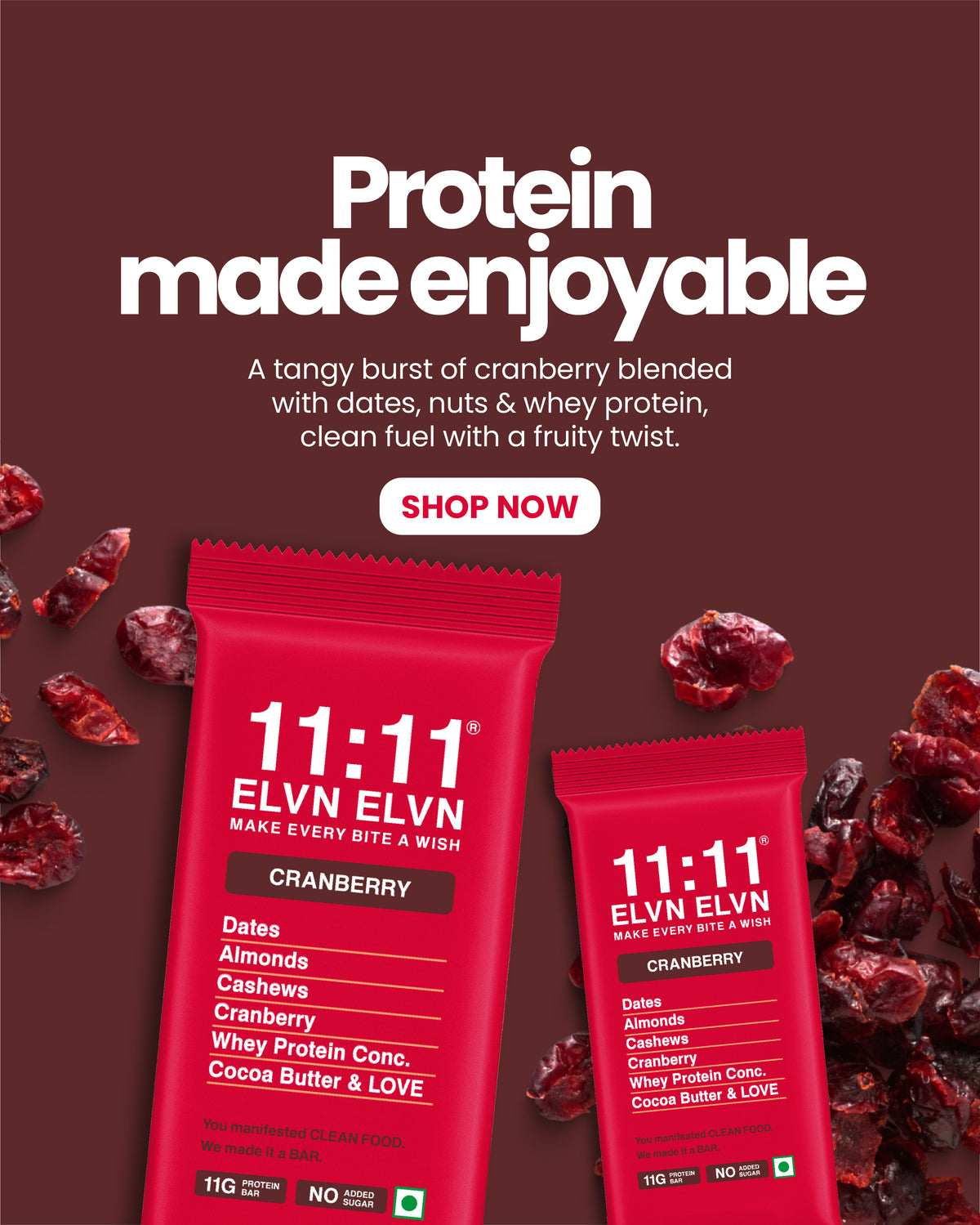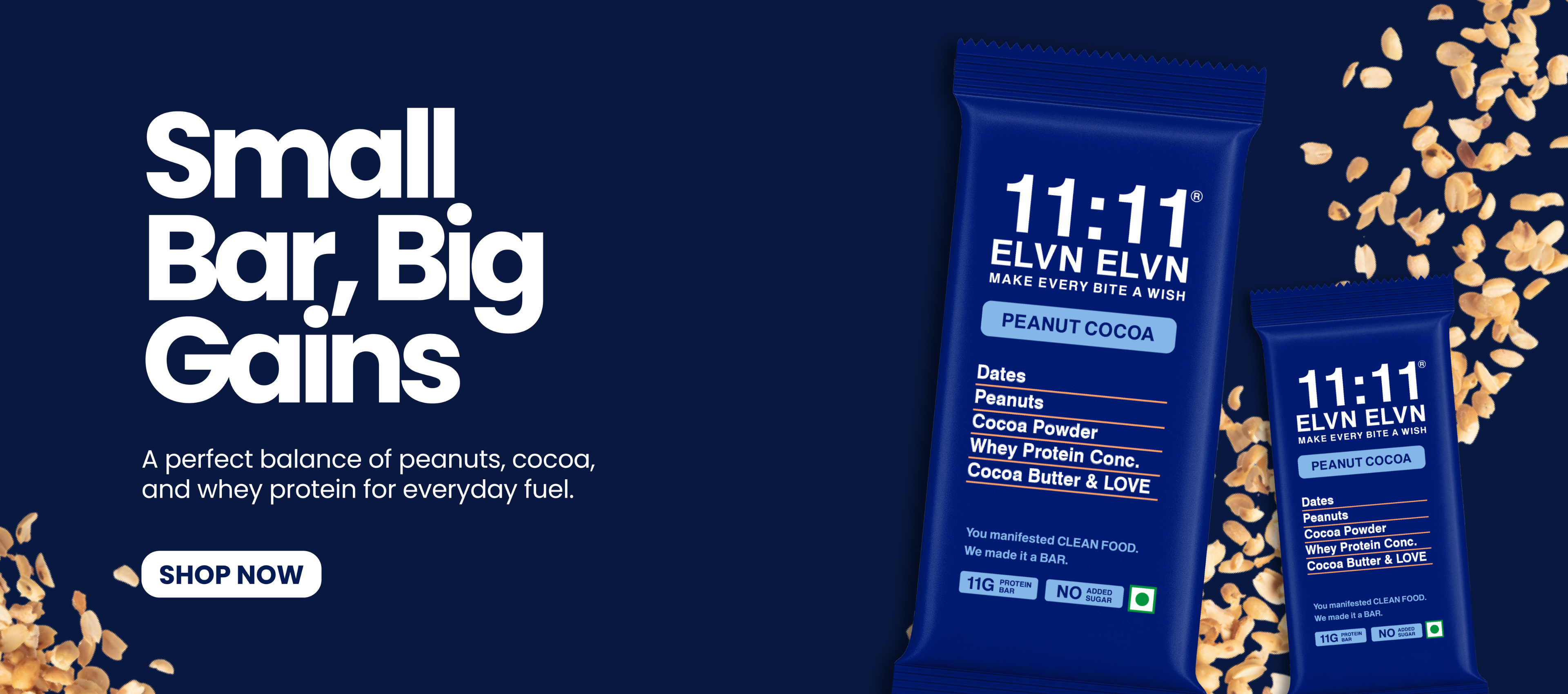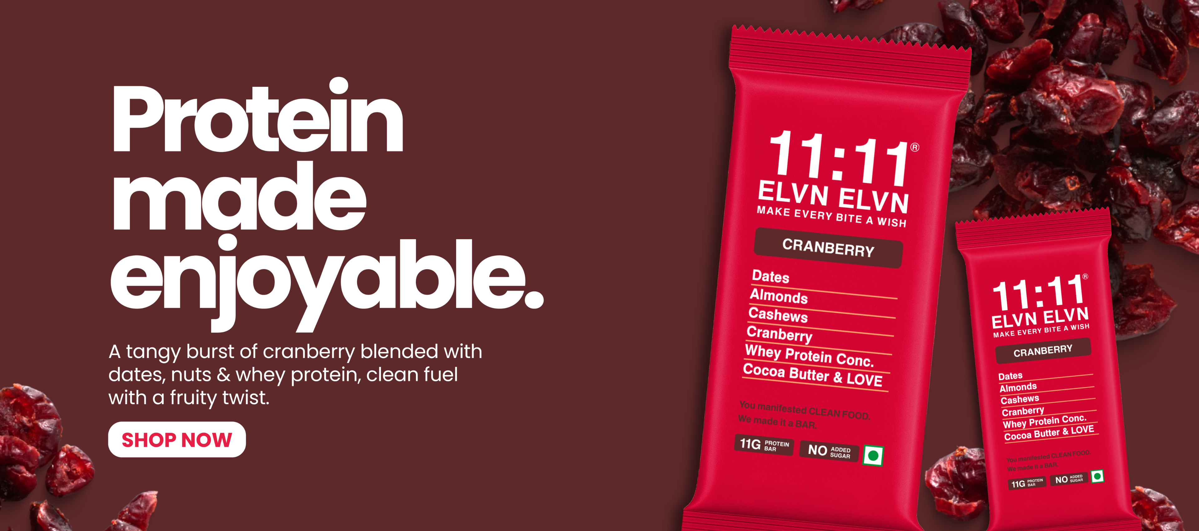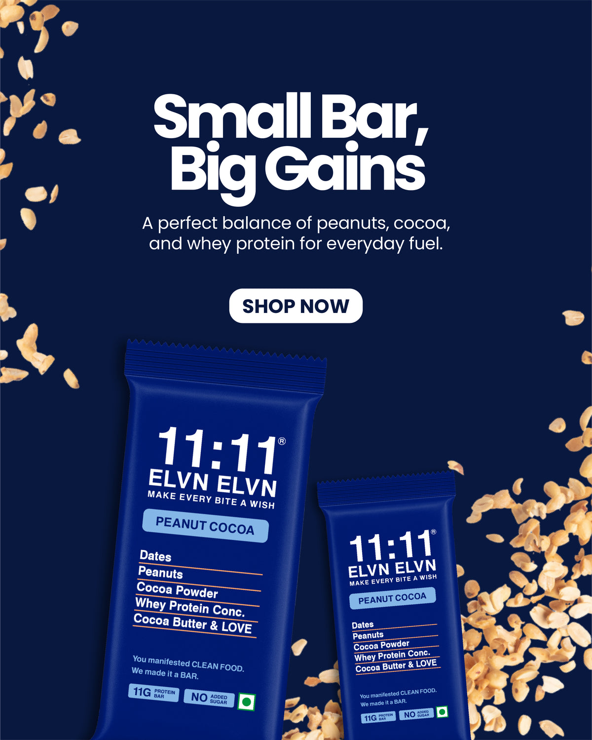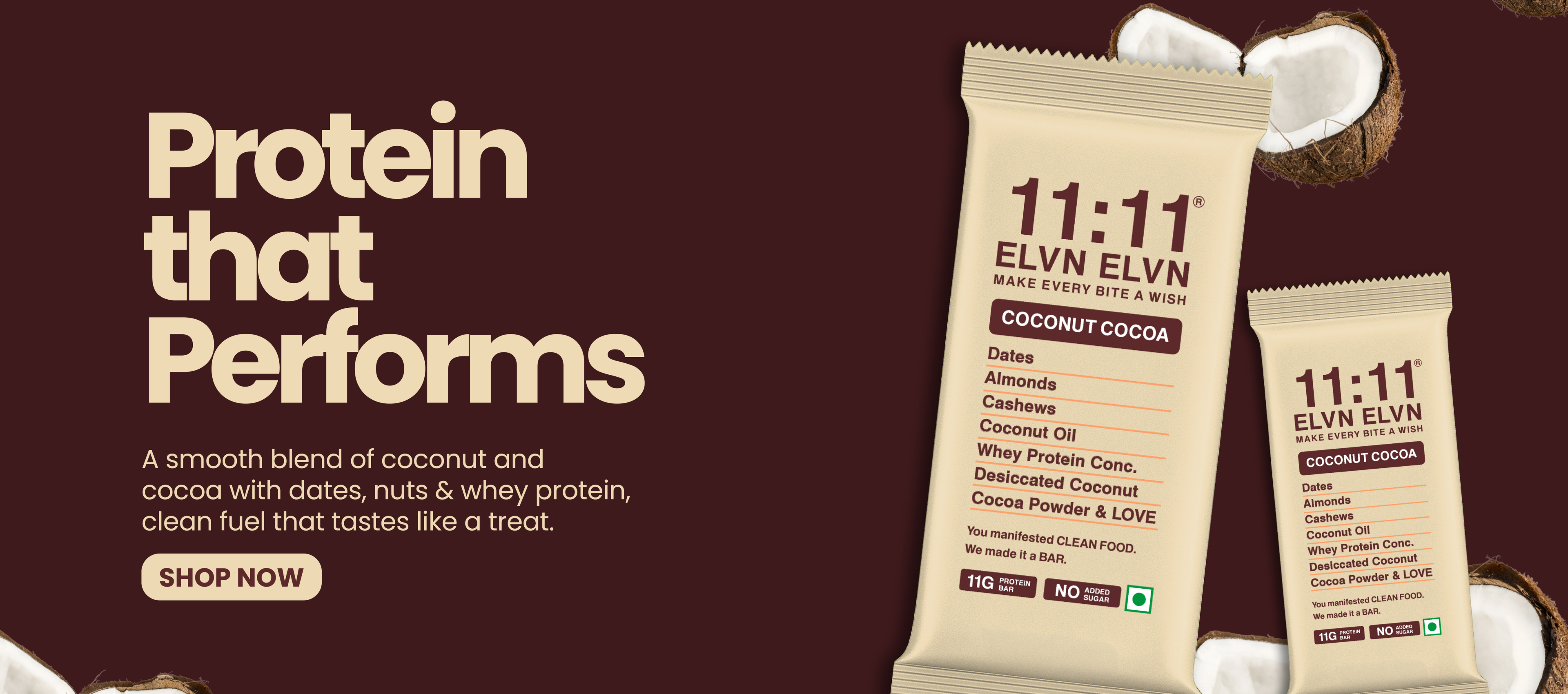 11 g per bar, That's 26 percentage of the total weight of bar which is primarily sourced from Whey Protein Concentrate, supported by natural protein from nuts. Clean, balanced, and easy to digest.
